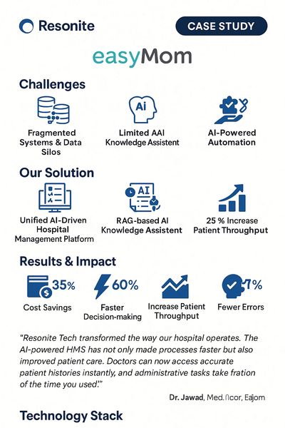"Resonite Tech transformed the way our hospital operates. The AI-powered HMS has not only made our processes faster but also improved patient care. Doctors can now access accurate patient histories instantly, and administrative tasks take a fraction of the time they used to."